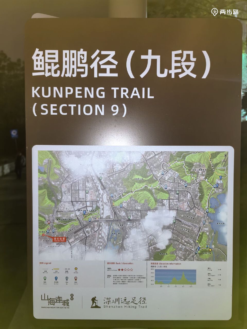 3.鲲鹏径3段(城市道路):8.5公里,宝石路路口(大井山警务工作室)-麻磡二号登山口(深圳长龙书院)。耗时约2小时。