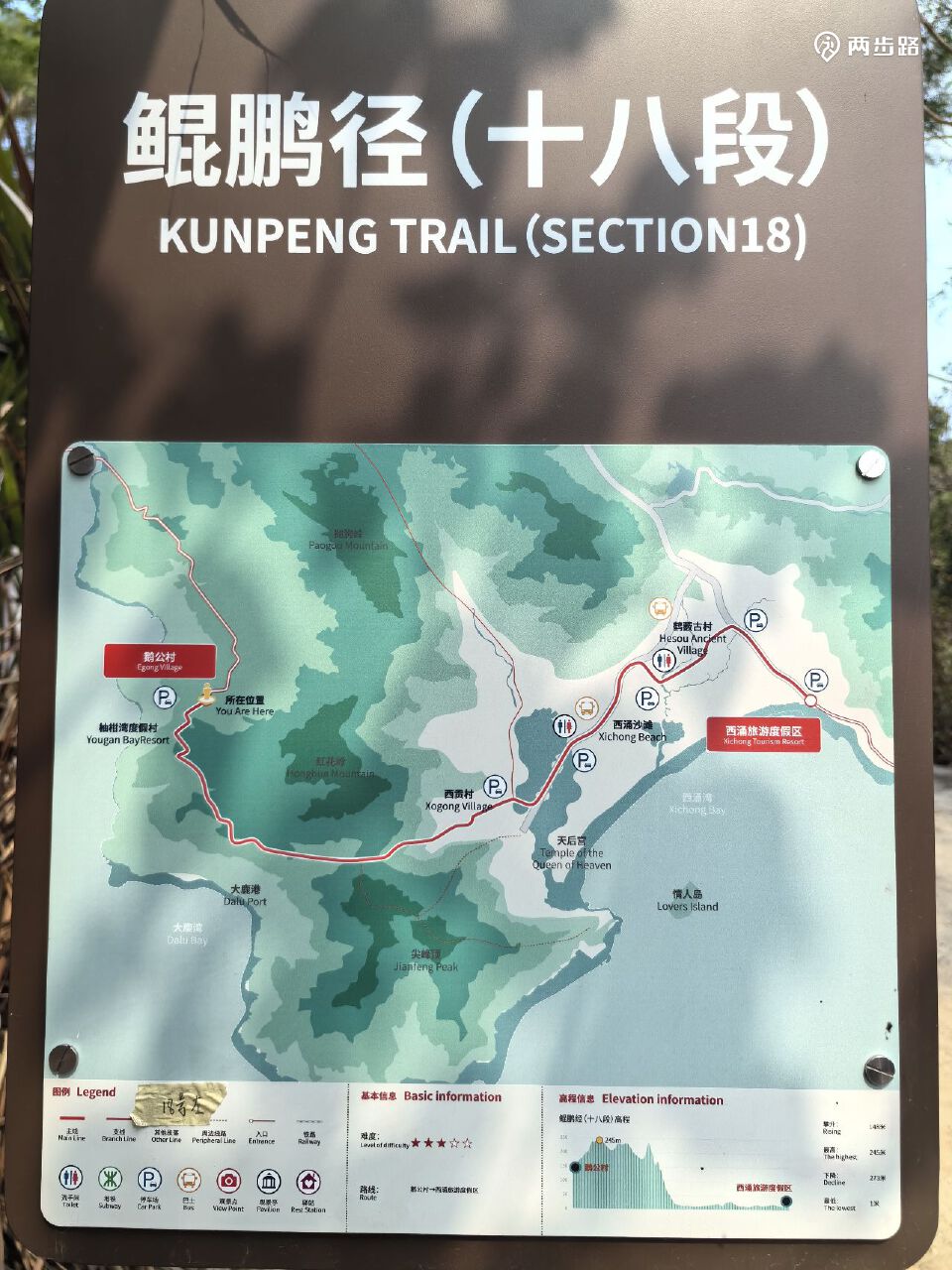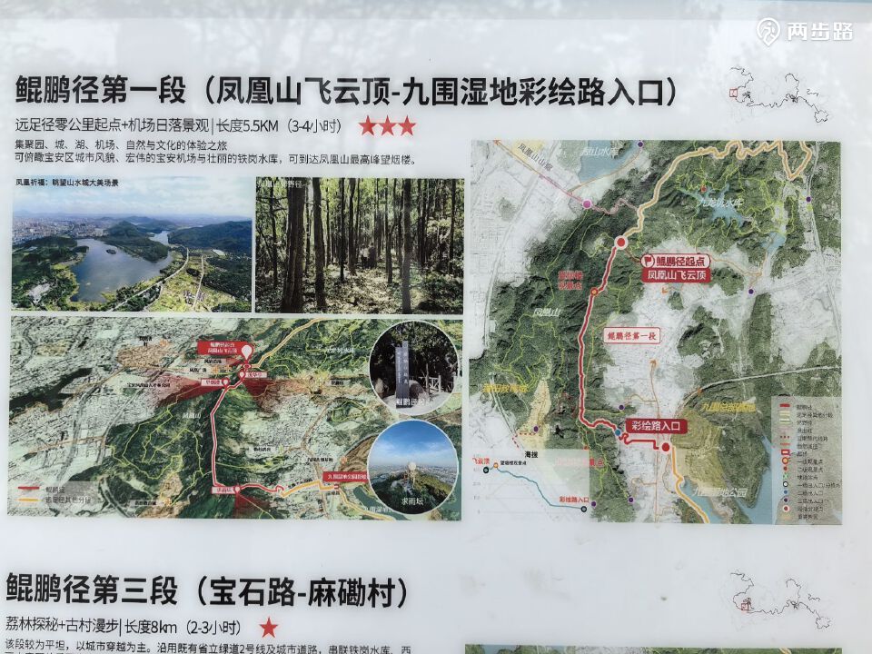 1.鲲鹏径1段(爬凤凰山):6公里(不含上山),凤凰山飞云顶(在山上)-彩绘路,YK000-YK012。耗时约2小时。
