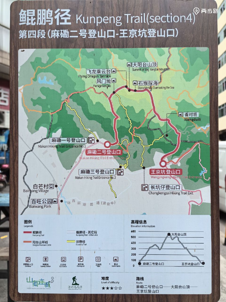 4.鲲鹏径4段(爬阳台山):8公里,麻磡二号登山口-王京坑登山口,YK059-YK073。耗时约2.5小时。
