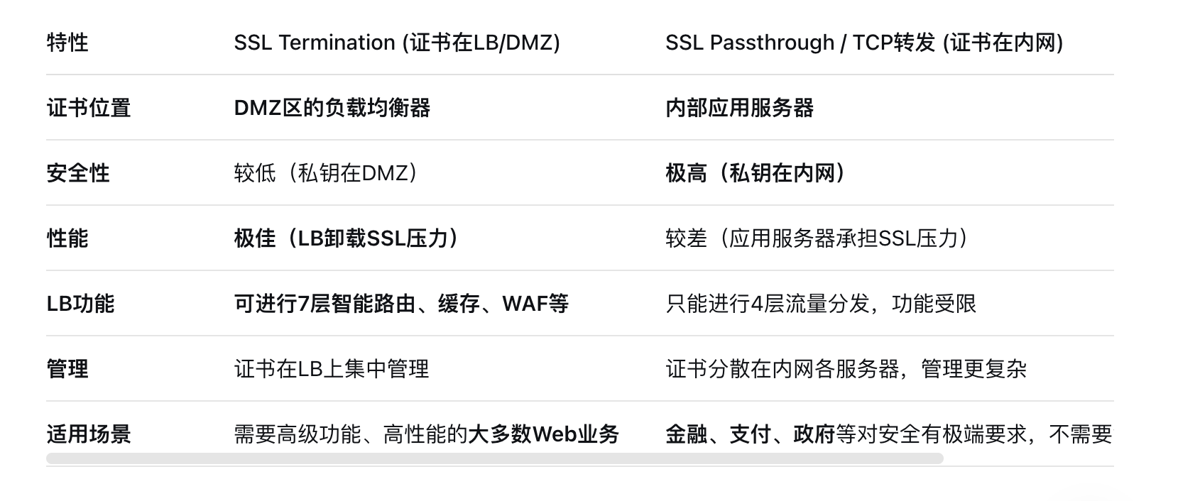 对于绝大多数企业和应用来说,将SSL证书放在负载均衡器(F5/Nginx/云LB)上,采用SSL Termination方案是首选和主流做法。它在性能、成本和易管理性上取得了最佳平衡。